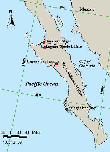 Les baleines grises sont nombreuses de janvier à mars, c’est un véritable refuge pour cette espèce qui vient s’y reproduire tous les ans. Elles arrivent tout droit du détroit de Behring. Trois lagunes de reproduction sont protégées et réservées à la baleine grise sur la côte Pacifique de la péninsule. (Scammon’s lagoon, San Ignacio Lagoon et Magdalena Bay).