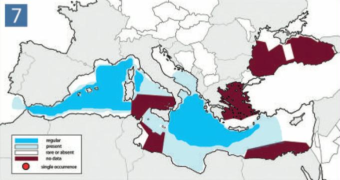 Le cachalot se distribue en majorité sur le talus que ce soit dans le Golfe du Lion, la mer liguro-provençale ou en Corse, fréquentant également les fonds supérieurs à 2000 mètres.
