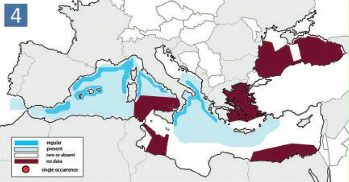 The greatest concentration is in the Ligurian-Corso-Provençal basin, where the species is present all year-round. In general, Risso’s Dolphins prefer deep offshore waters and continental slope areas. The Ligurian-Corso-Provençal basin is one of the few areas in the Mediterranean Sea where the continental shelf is close to the coast, giving especially good opportunities to observe and study this species.